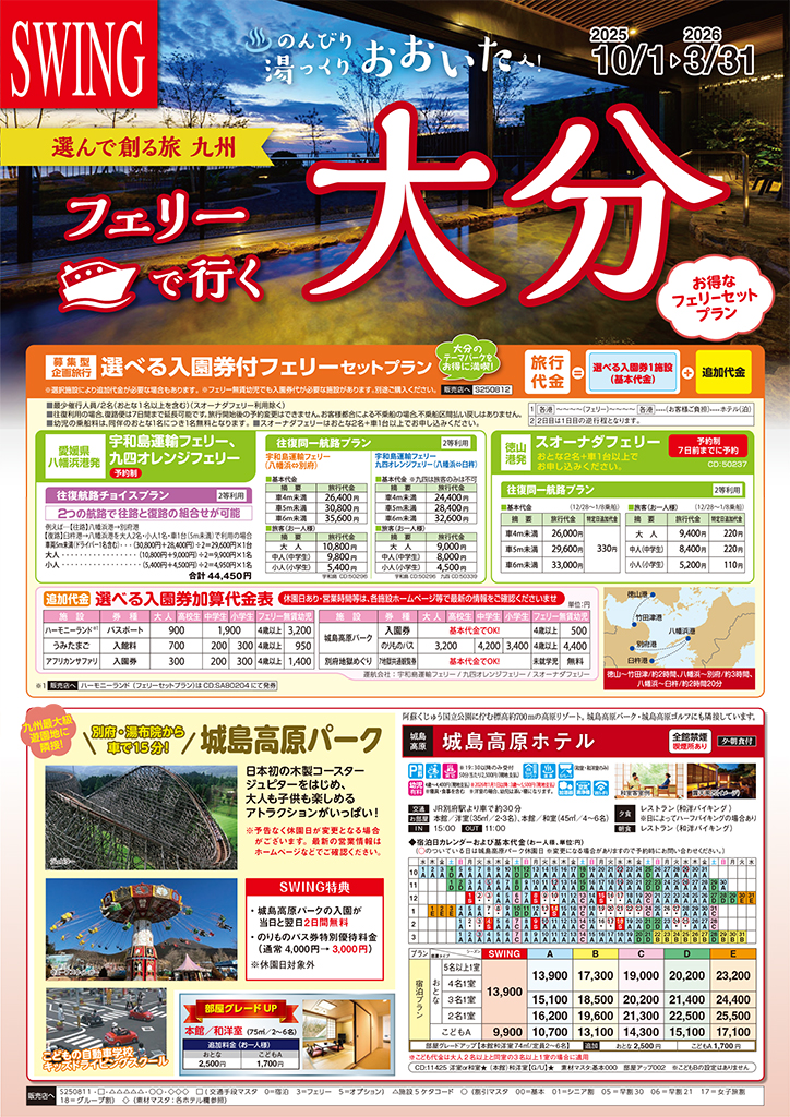 中四国発≪10~3月≫【選んで創る旅 九州】フェリーで行く大分