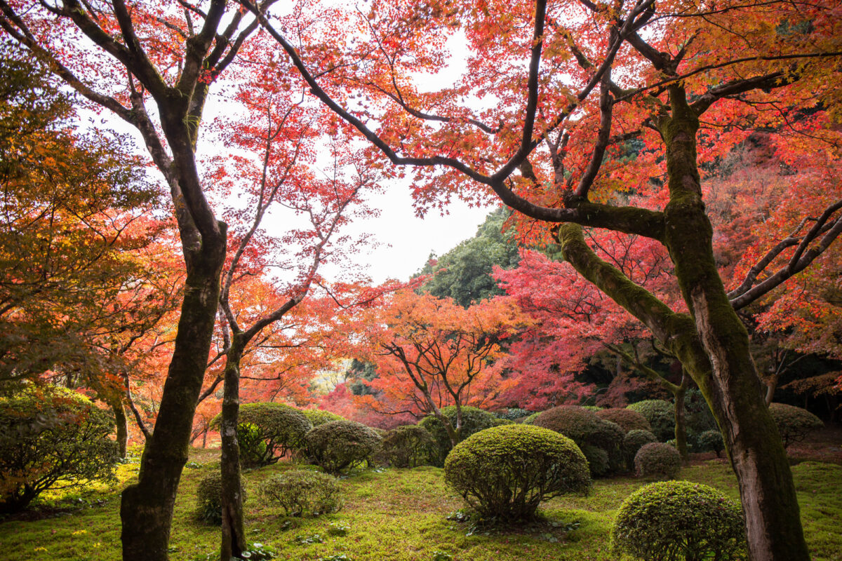 佐賀県神埼市にある国の名勝・九年庵は、実業家・伊丹弥太郎が9年の歳月をかけて築いた名庭園です。秋には約3,000平方メートルの苔庭が真紅や黄金色のモミジで彩られ、その幽玄な美しさから「一生に一度は訪れたい紅葉スポット」と称されます。一般公開は毎年11月15日〜23日の9日間限定ですが、今年は11月30日まで特別に公開延長。この貴重な機会を求めて全国から多くの観光客が訪れます。混雑必至の人気行事も、バスツアーなら整理券や駐車場の心配が不要で、安心して紅葉を鑑賞可能。苔とモミジが織りなす絵画のような絶景は、短い公開期間だからこそ一層の価値があり、秋旅のハイライトとしておすすめです。