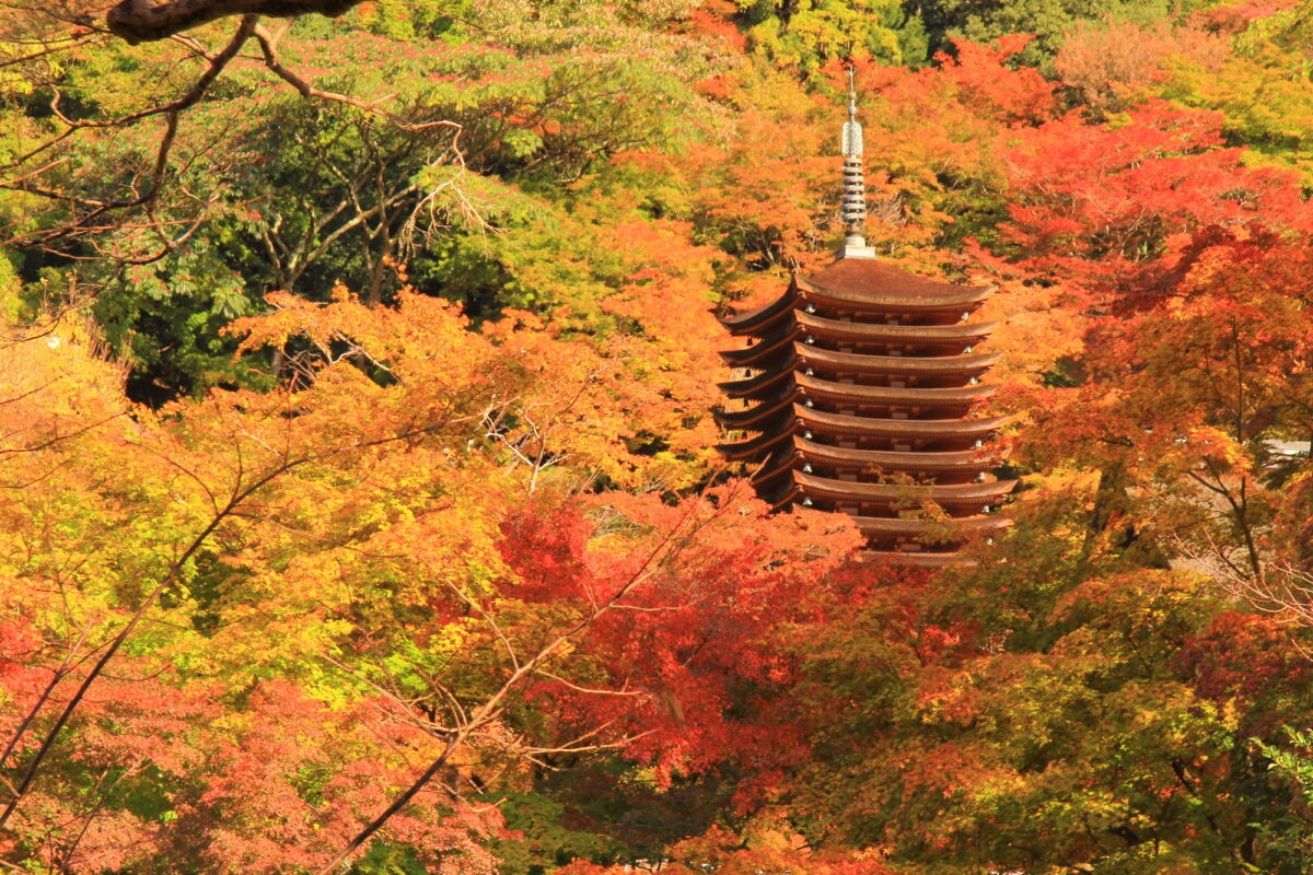奈良を代表する紅葉名所を一日で巡ります。まず訪れる談山神社は、大化の改新ゆかりの地で知られ、境内の十三重塔と約3,000本のモミジが織りなす景観は圧巻。続いて「花の御寺」と称される長谷寺では、国宝本堂から山一面に広がる紅葉を一望でき、登廊を彩るモミジも見どころです。さらに「女人高野」と呼ばれる室生寺では、日本最小の五重塔と赤や橙に染まる紅葉が織りなす幽玄の景色を楽しめます。個人ではアクセスが難しい山間の名刹も、バスツアーなら効率よく快適に巡れるのが大きな魅力です。