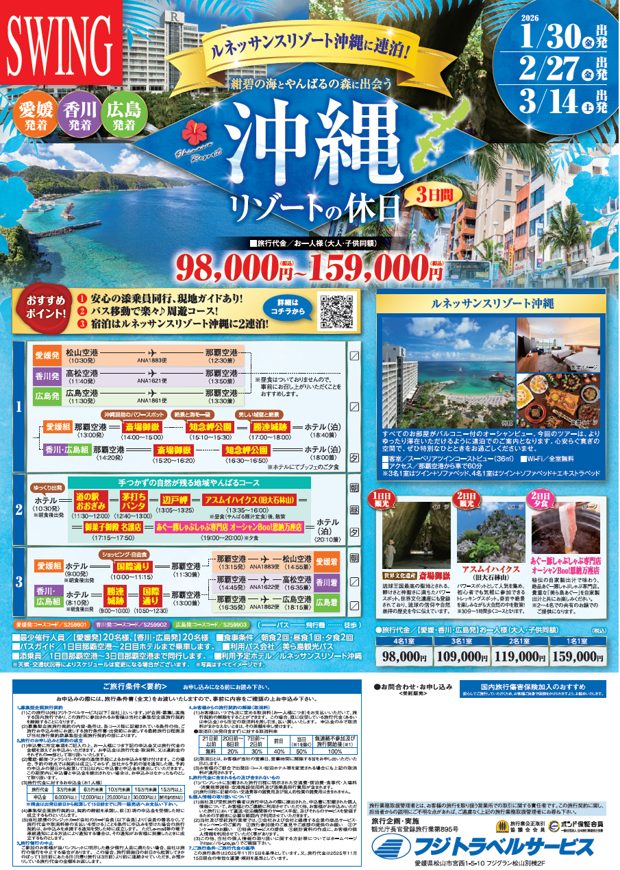 - 1日目那覇空港~3日目那覇空港まで同行いたします