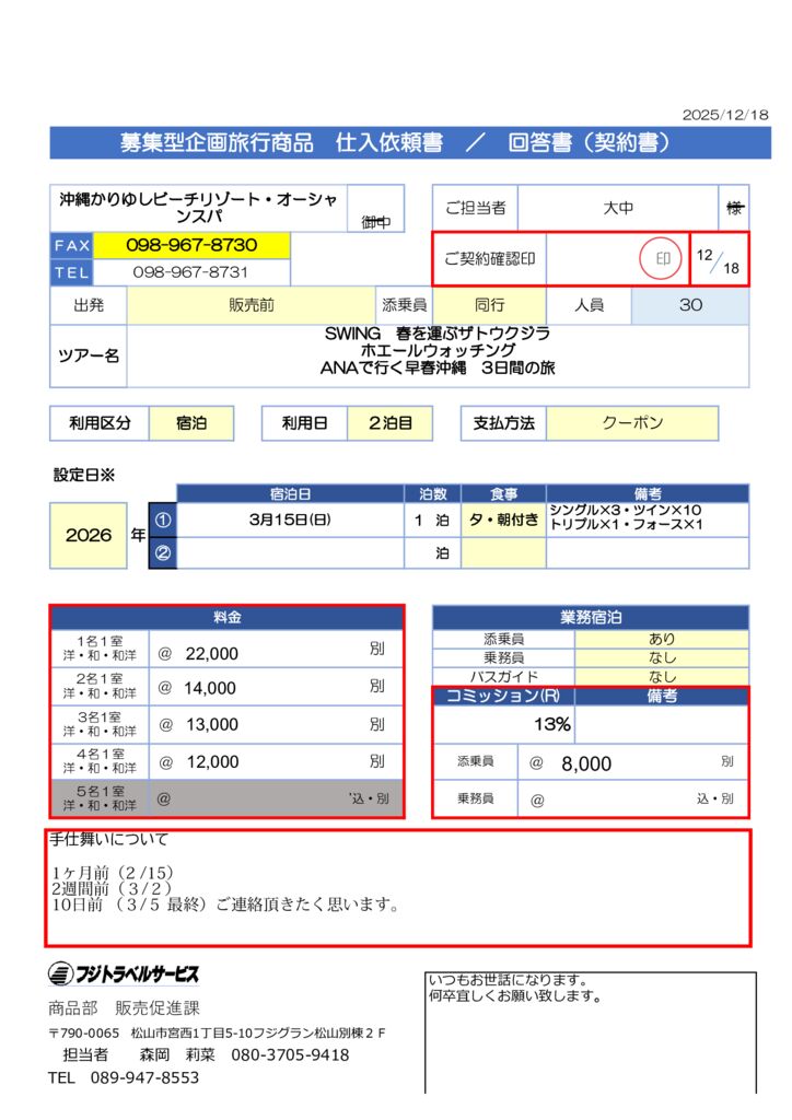 大中様★宿泊仕入依頼書