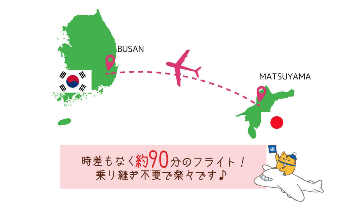 今回は愛媛県・松山空港から出発!松山空港から釜山の金海空港までは約1時間半。毎日運航してますので、とっても便利なんです♪
