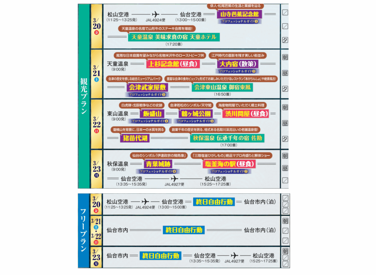 【観光プラン】1日目仙台空港~4日目仙台空港まで