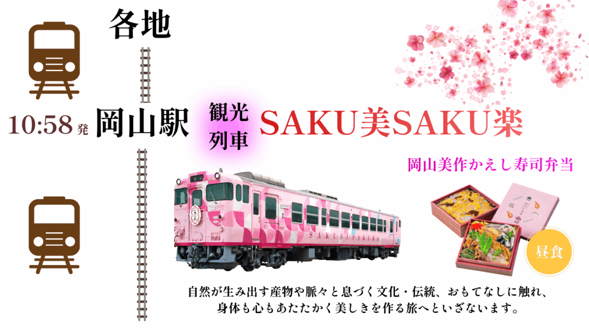 JR松山駅発/広島駅/高松駅/宇多津駅など【各地発着】SWINGプレミア鉄道 SAKU美SAKU楽で行く2026津山さくらまつりと旧津山扇形機関車庫