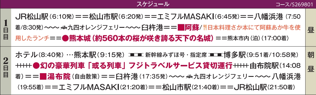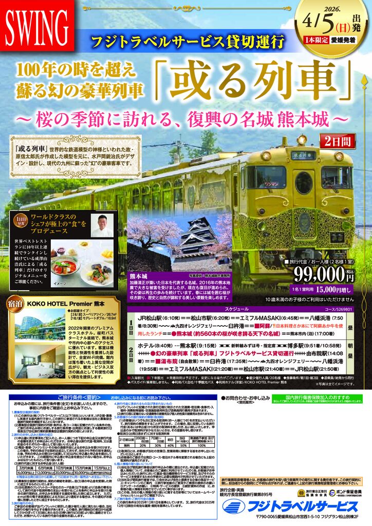 エミフルMASAKI発/松山駅発/松山市駅発【4/5(日)】幻の豪華列車「或る列車」貸切 桜の季節に訪れる復興の名城熊本城