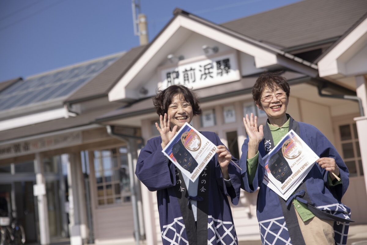 途中停車する肥前浜駅は、日本酒の蔵元が点在する歴史ある酒蔵のまち。 白壁の町並みと、土地に根付いた酒造りの文化が、旅に奥行きを添えます。