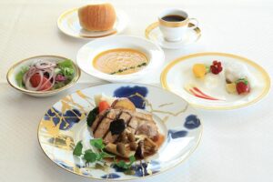 地元の食材をふんだんに盛り込んだフレンチコース。ジューシーな岡山県産の美星豚や新鮮な瀬戸内海の食材、山海の幸を余すことなくご堪能いただけます。旬のフルーツを使ったホテルメイドのスイーツもお愉しみいただけます。