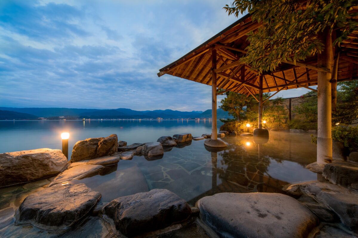 絶景の湖上温泉で厳選かけ流し100%の温泉をお楽しみください。