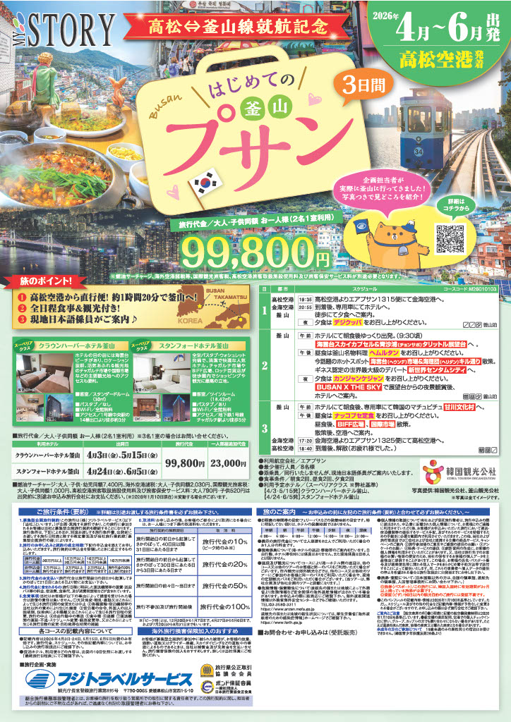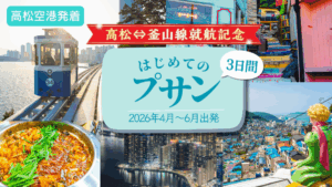 祝!高松空港⇔釜山・金海空港就航記念商品【高松空港発着】高松⇔釜山線就航記念!はじめてのプサン3日間|2026年4月~6月出発