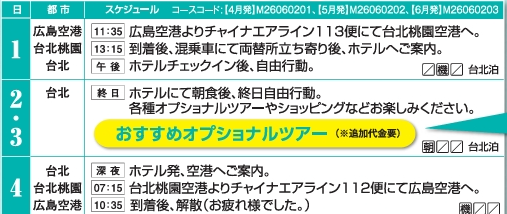広島空港発【広島空港発着】自由な旅をデザイン カジュアル台北4日間|2026年4月~6月
