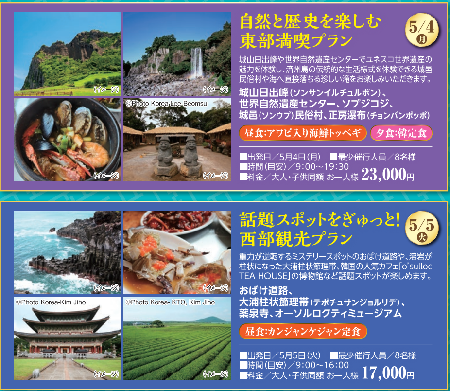 自然・歴史・グルメなど、済州島の魅力を深掘りできるプランをご用意しております(日本申込/日本払い)。