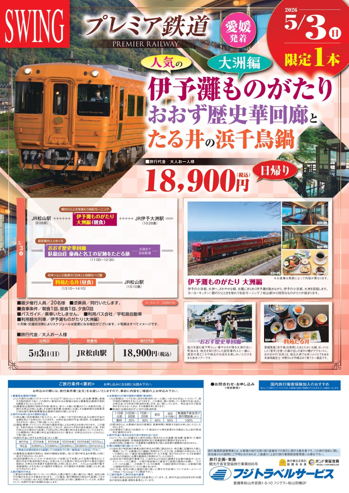 JR松山駅発伊予灘ものがたり 大洲編 おおず歴史華回廊とたる井の浜千鳥鍋 日帰りツアー|2026年5月3日(日)出発