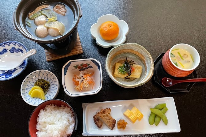 愛媛県産「浜千鳥」を使用したあたたかいお鍋、ほっくりとした「里芋」を使った揚げ出しの変わり種がアクセントに、