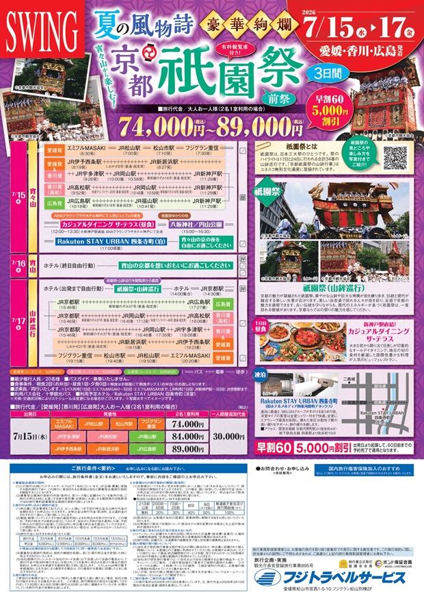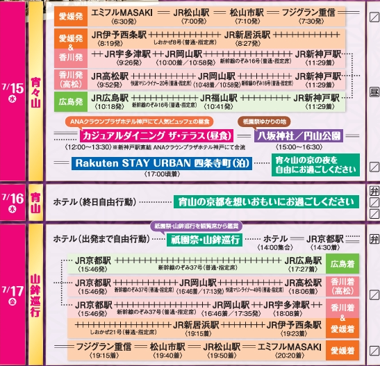 【愛媛・広島・香川発着】夏の風物詩 京都祇園祭3日間 2026年7月15日(水)発
