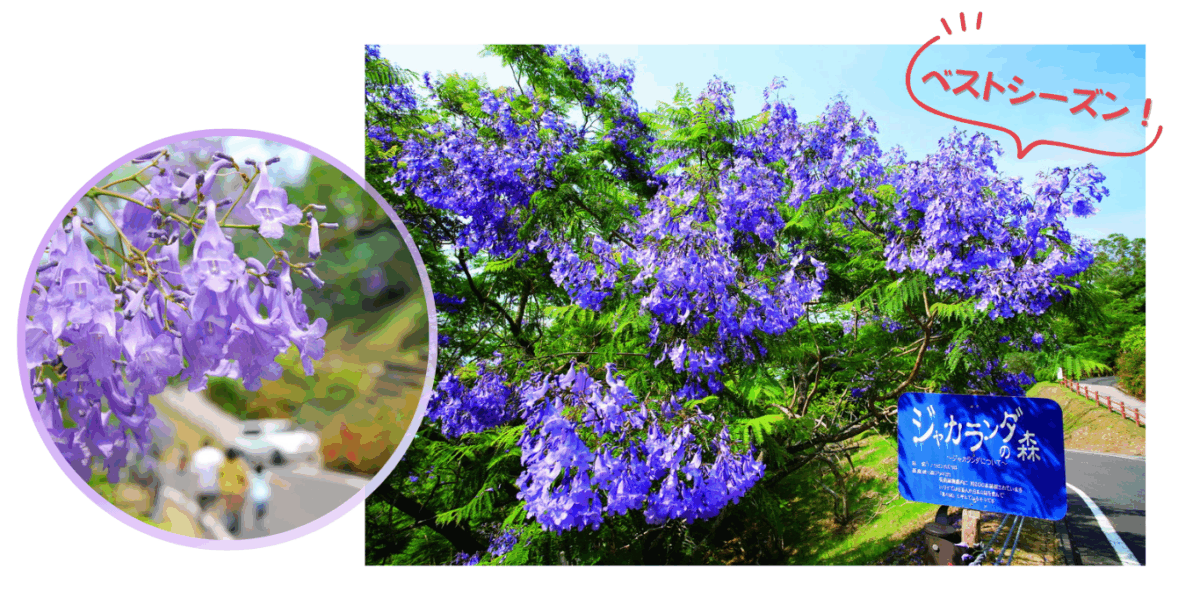 宮崎県日南市はジャカランダの鑑賞スポットとしても知られ、南国らしい風景を楽しめる、この時期ならではの見どころとして人気を集めています。