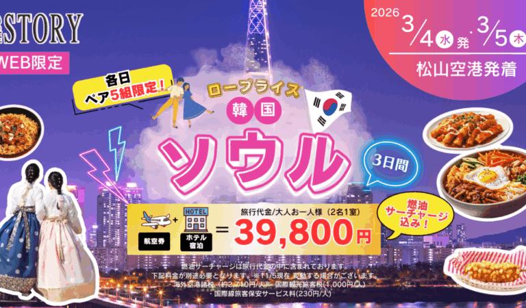 「ソウル」を含む情報 松山空港発*専用申込フォーム(2025産業まつりご来場者限定)*【WEB限定】ペア5組限定 松山... デザインソウルソウル韓国マイストーリー松山空港発着フリープラン 【出展のお知らせ】えひめ・まつやま産業まつり2025... 産業まつり抽選会格安ソウルツアープサンソウル韓国マイストーリーイベント 広島空港発*2名から出発OK*【広島空港 10~3月出発】エンジョイソウル 3・4日間... エンジョイソウルソウル韓国マイストーリー広島空港発着フリープラン 松山空港発*2名から出発OK*【松山空港 10~3月出発】エンジョイソウル 3・4日間... エンジョイソウルソウル韓国マイストーリー松山空港発着フリープラン