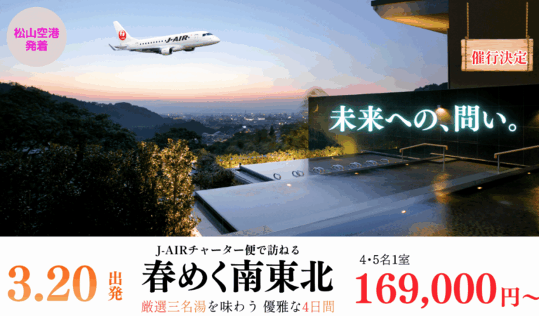 「添乗員同行」を含む情報 エミフルMASAKI発/松山駅発/松山市駅発【4/5(日)】幻の豪華列車「或る列車」貸切 桜の季節に訪れる復興の名城熊本城... 或る列車SWINGプレミア鉄道プレミア鉄道プレ鉄1泊2日バスツアー列車の旅添乗員同行 高知発 WEB限定【4/11(土)】名所をぎゅっと!春の出雲大社参拝と足立美術館2日間... 高知発出雲出雲大社温泉旅グルメ旅パワースポット1泊2日バスツアーSWING添乗員同行 エミフル発/JR松山駅発/市駅発 【4/12(日)】春の競演!吉野千本桜と大阪まいしまシーサイドパークネモフィラ祭り グ... 吉野山奈良関西3日間兵庫桜SWING添乗員同行バスツアー JR松山駅発/広島駅/高松駅/宇多津駅など【4/11(土)・4/12(日)】SWINGプレミア鉄道 SAKU美SAKU楽で行く2... 津山岡山SAKU美SAKU楽プレミア鉄道プレ鉄日帰りツアー桜SWING日帰り添乗員同行バスツアー 【3/29(日)JR松山駅発着・日帰りツアー】SWINGプレミア鉄道 伊予灘ものがたり... 道後編プレミア鉄道プレ鉄日帰りツアー桜SWING伊予灘ものがたり日帰り添乗員同行バスツアー 【3/28(土)JR松山駅発着・日帰りツアー】SWINGプレミア鉄道 伊予灘ものがたり... 大洲編プレミア鉄道プレ鉄日帰りツアーSWING伊予灘ものがたり日帰り添乗員同行バスツアー 松山空港発*催行決定*【松山空港発】J-AIRチャーター便で行く春めく南東北 天童・東山・秋保 ... 南東北SWINGチャーター温泉添乗員同行松山空港発着周遊プラン飛行機プラン 【松山・広島・高松発】SWING この時期だけの感動体験!ベストシーズンに行くホエール... ホエールウォッチング高松空港発着愛媛発SWING沖縄添乗員同行松山空港発着周遊プラン広島空港発着飛行機プラン 【愛媛・香川・広島発】1~3月設定 ルネッサンスリゾート沖縄に連泊!紺碧の海とやんばる... 高松空港発着SWING沖縄添乗員同行松山空港発着周遊プラン広島空港発着飛行機プラン JR松山駅発*催行決定あり!*WEB申込限定【1~2月/JR松山駅発着】旬のいちごスイーツと三次ワ... いちご狩りいちごパフェ千光寺平田観光農園三次ワイナリー広島WEB申込限定ツアー松山発イチゴSWING催行決定WEB申込限定日帰り添乗員同行バスツアー 愛媛発・香川発・高知発・広島発\\催行決定!//【愛媛・香川・高知・広島発】SWING プレミア鉄道 汽笛と氷のきら... 催行決定ツアーSWINGプレミア鉄道プレミア鉄道プレ鉄列車の旅添乗員同行北海道 JR広島駅※催行決定※キャンセル待ち【広島発】1/17(土)発 SWINGプレミア鉄道 etSE... 催行決定ツアーSWINGプレミア鉄道プレミア鉄道プレ鉄列車の旅添乗員同行