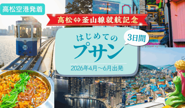 「高松空港発」を含む情報 祝!高松空港⇔釜山・金海空港就航記念商品【高松空港発着】高松⇔釜山線就航記念!はじめてのプサン3日間|2026年4月~6月出発... 就航記念高松空港発釜山プサン韓国マイストーリーツアー